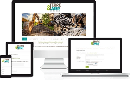 Sobriété et clarté pour le site internet de cette agence de recrutement et d'intérim en Bretagne spécialisée dans les métiers de la terre (agriculture, paysage, TP, transport) et les métiers de la mer. Modules de programmation sur-mesure pour récupérer et gérer les candidatures en ligne.